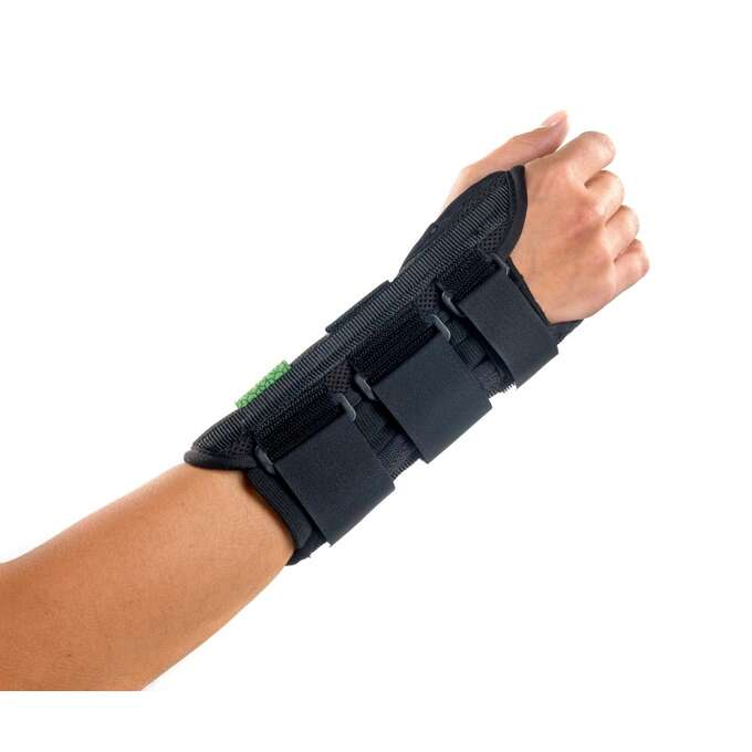 Miękka | Wykonana z elastycznego materiału, pozwala na częściowy ruch dłoni | Lekkie przeciążenia, zapalenia ścięgien, praca biurowa |